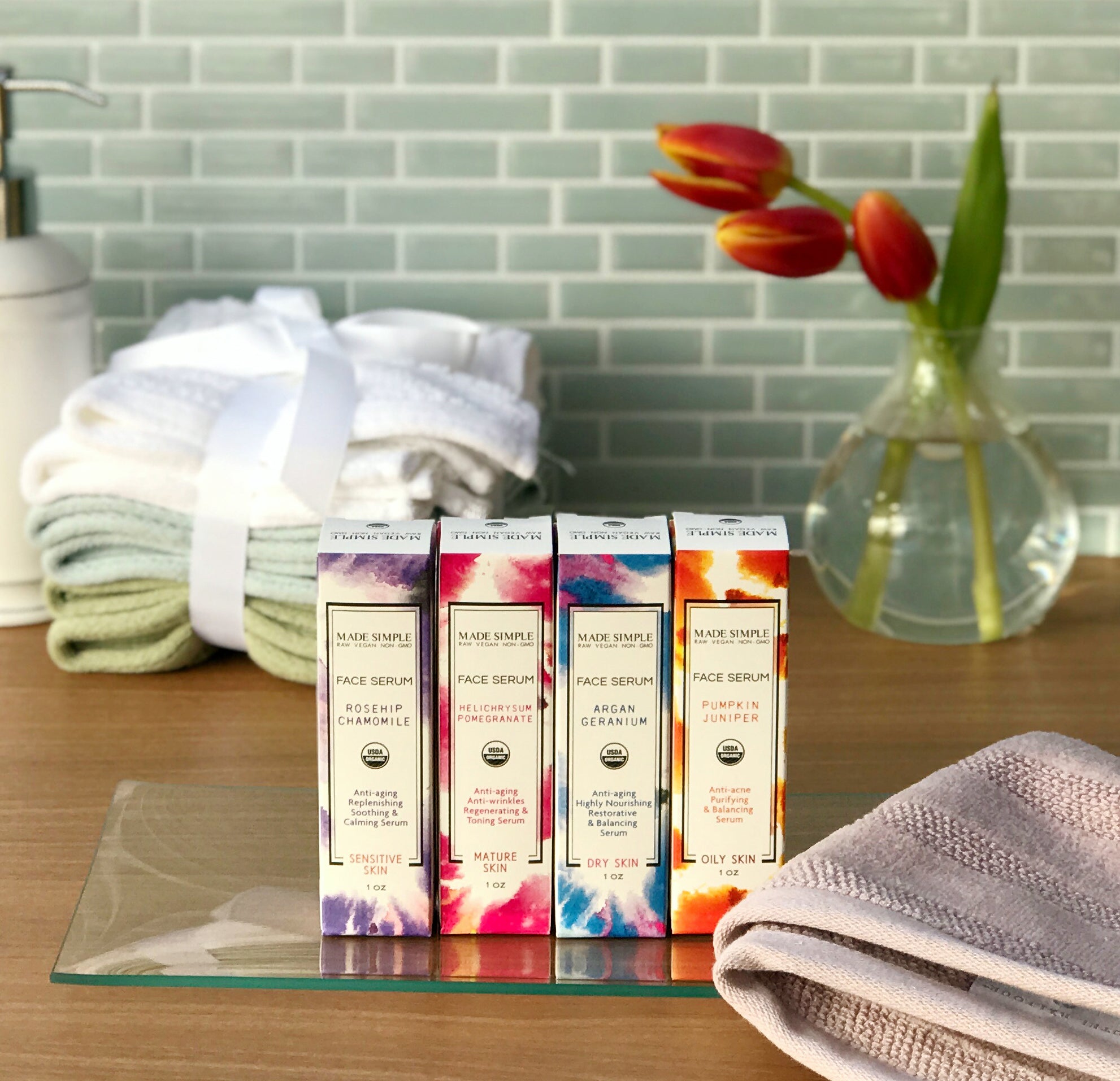 Our serums contain only certified organic oils that work with and enhance your body’s natural oils to help heal and balance your skin. Each product is specially formulated with only active 100% plant-based ingredients to address the needs of different skin types. Each unique oil complex creates a protective lipid layer that hydrates and moisturizes the skin while the essential oils sustain antioxidant activity and cell protection. Every ingredient is actively balancing your skin.