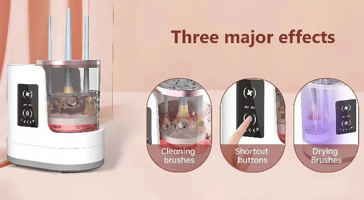 5,Makeup brushes not staying dry? : The 3 In 1 Electric Makeup Brush Cleaner Machine comes with a Makeup Brush Dryer and a Makeup brush holder to dry your Makeup Brushes without damage, whether it's a cold winter day or a hot summer day, freeing up your hands,Have a dry Makeup Brush.