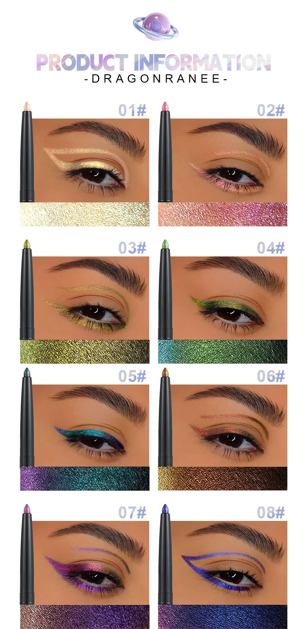 Glitter Metallic Eye Shadow Liner Pencil Waterproof Shiny Chrome Eyeliner Pearl Green Gold Purple Lying Silkworm Pen Makeup Tool