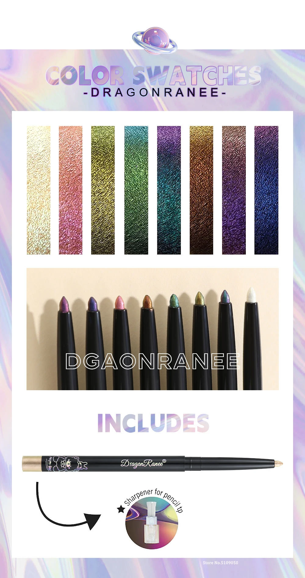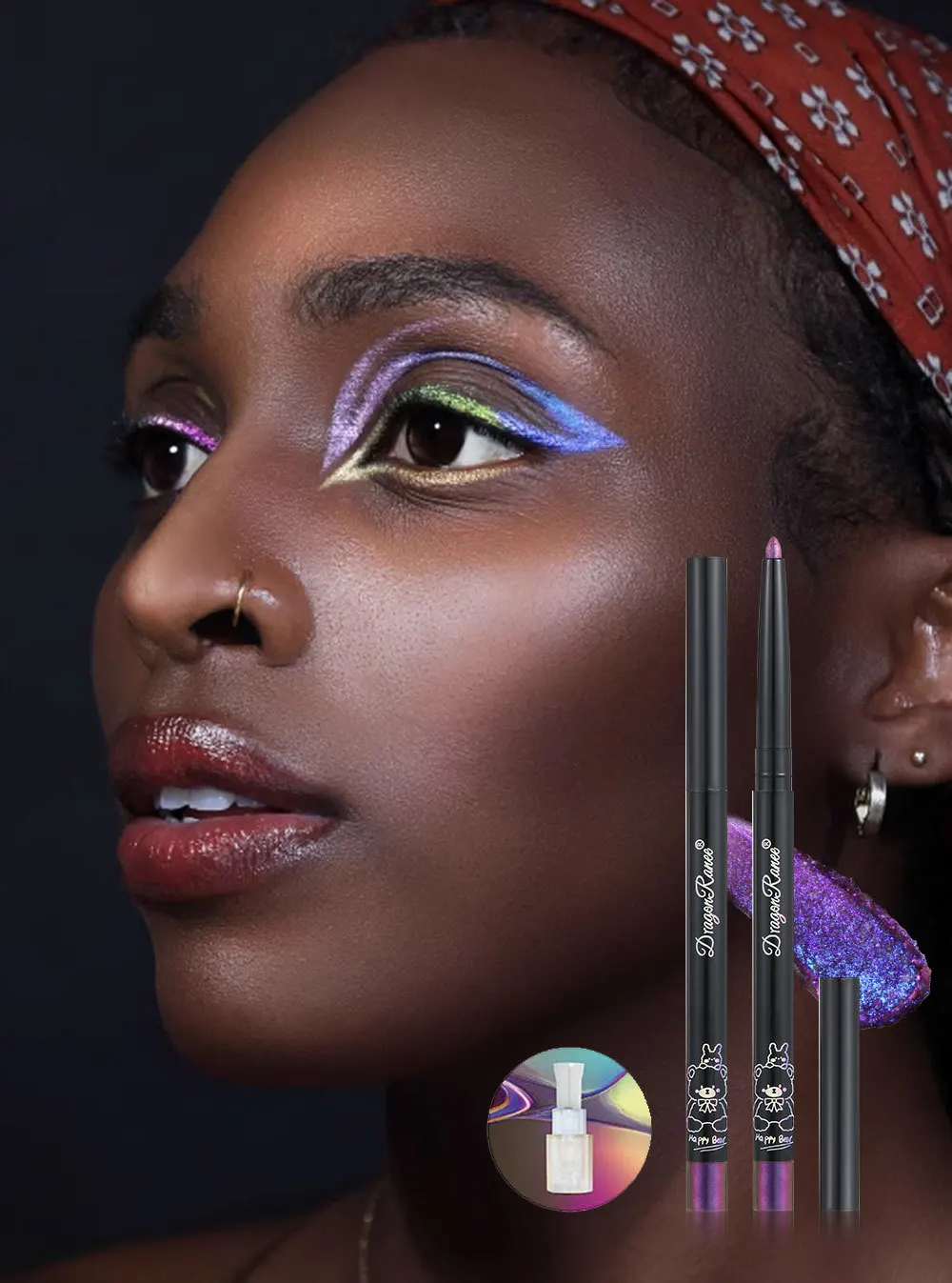 5.【Widely Used】One bottle is multi-purpose, in addition to eye makeup, it can also be applied to the collarbone, shoulders, arms, ears, calves, etc.